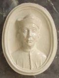 una placa de mármol, con su rostro tallado en alto relieve. (Apuntes de