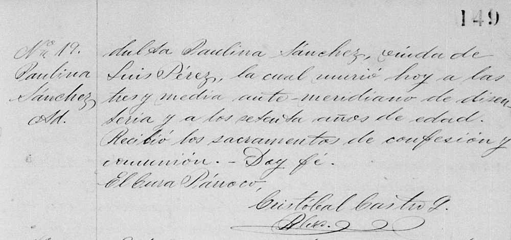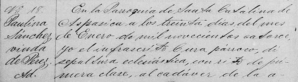 PAULINA SÁNCHEZ VIUDA DE PÉREZ - ACTA DE DEFUNCIÓN