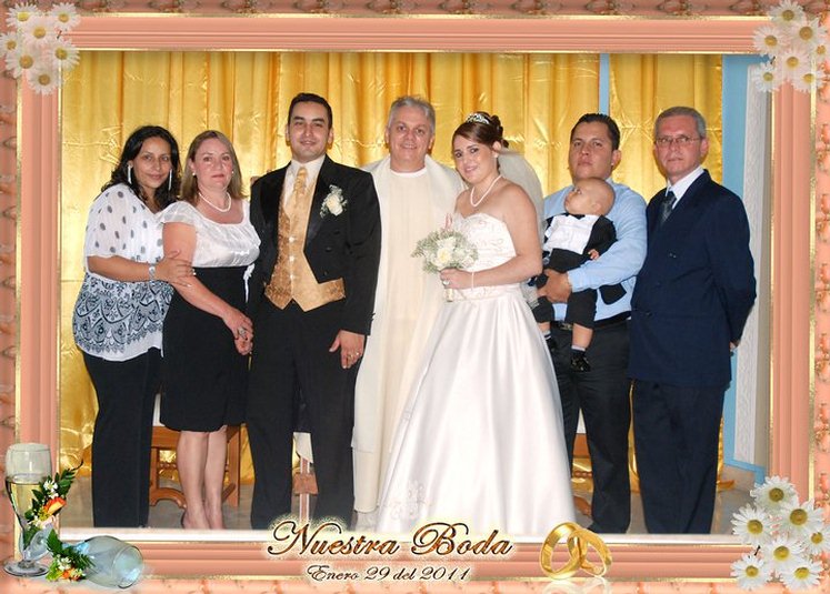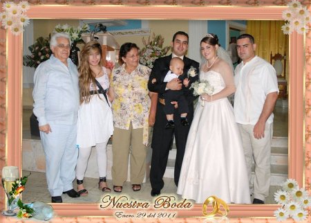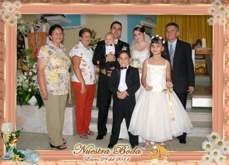 El 8 de enero de 2005, Alejandra contrajo matrimonio con Cristian Fernando Blanco Bernal (estudiante de electromecánica), en la Catedral de Cúcuta, a la 5:00 p.m. Su tío Guido, fue el encargado de entregarla al novio en la iglesia. En las horas de la noche, en un salón comunal de El Contento, hubo una gran fiesta, con más de 50 invitados. Por la familia de Güicha asistieron: Armando Pérez Vargas (hijo mayor de Güicha), Guido Antonio, Guido Armando, Claudia Liliana, Irma Stella; Faride, Jaime Enrique, Raquel, Manuel Isnardo, Lucy; Javier, Gladys y Carolina. Por la familia de Martha asistieron: Martha, José Luis, Stella, Chucho, Carlos Jesús, Andrea; Claudia, con su esposo e hijos; la tía, que vino de Bogotá, con su hija, y muchos amigos del sector. El padre Ismael Arévalo los visitó el día anterior para impartirles la bendición. | |||||||||