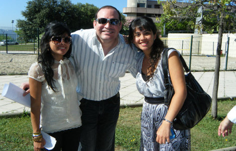 las fotografías se observa con una compañera de nacionalidad chilena,