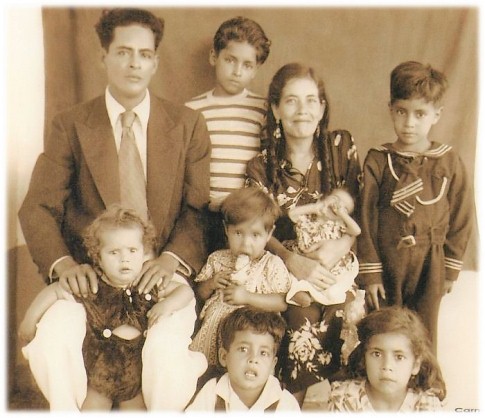 Rosario (Cuya), María Faride y Arnulfo. Sentados: Mamá Juanita,