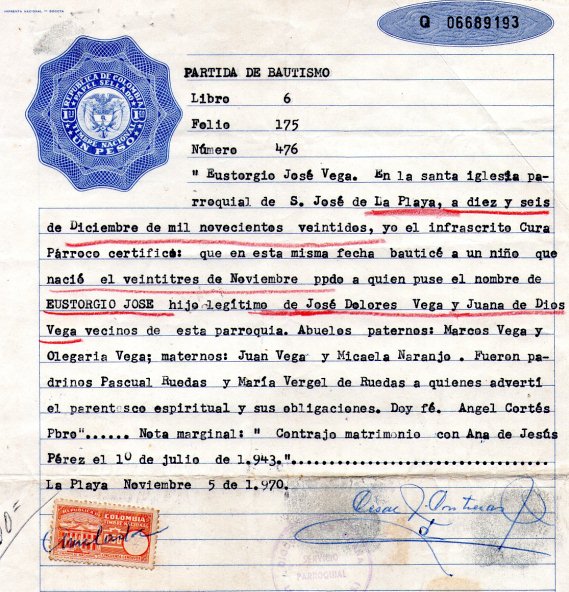 Aguilera (bisnieta de MARÍA CARMELINA VEGA VEGA), Carlos Guillermo Mora