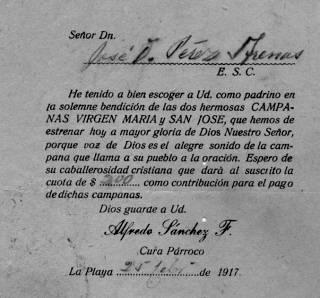 por el presbítero Alfredo Sánchez Fajardo a Don José Domingo