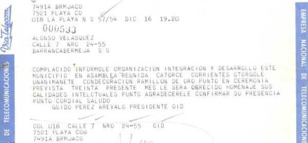 y fondo, del papel utilizado por la Colonia Playera residente en Bogotá.