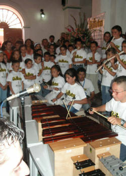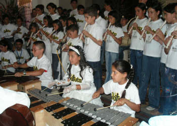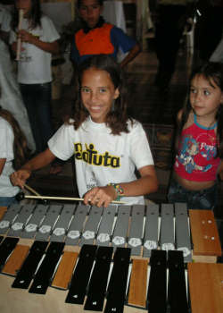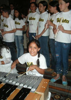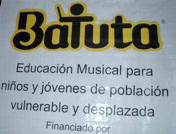 se preparan para el siguiente nivel: Los centros de orquestas infantiles están en la mayoría de departamentos del país, pero para junio, estarán en todos los departamentos. Consolidar la red de orquestas infantiles generará una cualidad en la sensibilidad de la juventud colombiana. Enseñarles desde temprana edad las destrezas de los instrumentos, y las sutilidades del arte, es un gran aporte cultural al país, y es una forma de deshacer la violencia con el arte.Los niños se realizan y se proponen metas elevadas. Muchos prefieren no comer por ir a clase, donde se sienten personas de verdad, y no estorbos en la casa. Carlos Vives y Manuel Serrat han venido a cantar con las orquestas que hacen su gran presentación en diciembre, aunque en el transcurso del años también hay presentaciones. Los centros son gratuitos dependiendo de la zona; las que están en los barrios acomodados tienen un costo por el arrendamiento pero los centros de los barrios pobres son gratis. Los niños y jóvenes responden con gran alegría y motivación a esta Fundación; Gracias a ellos las poblaciones se han unido y son muchas las anécdotas que se pueden contar de las experiencias obtenidas por medio de la Fundación Batuta. batuta@andinet.com Tomado de http://www.colombiaaprende.edu.co/html/estudiantes/1599/article-75799.html | |
